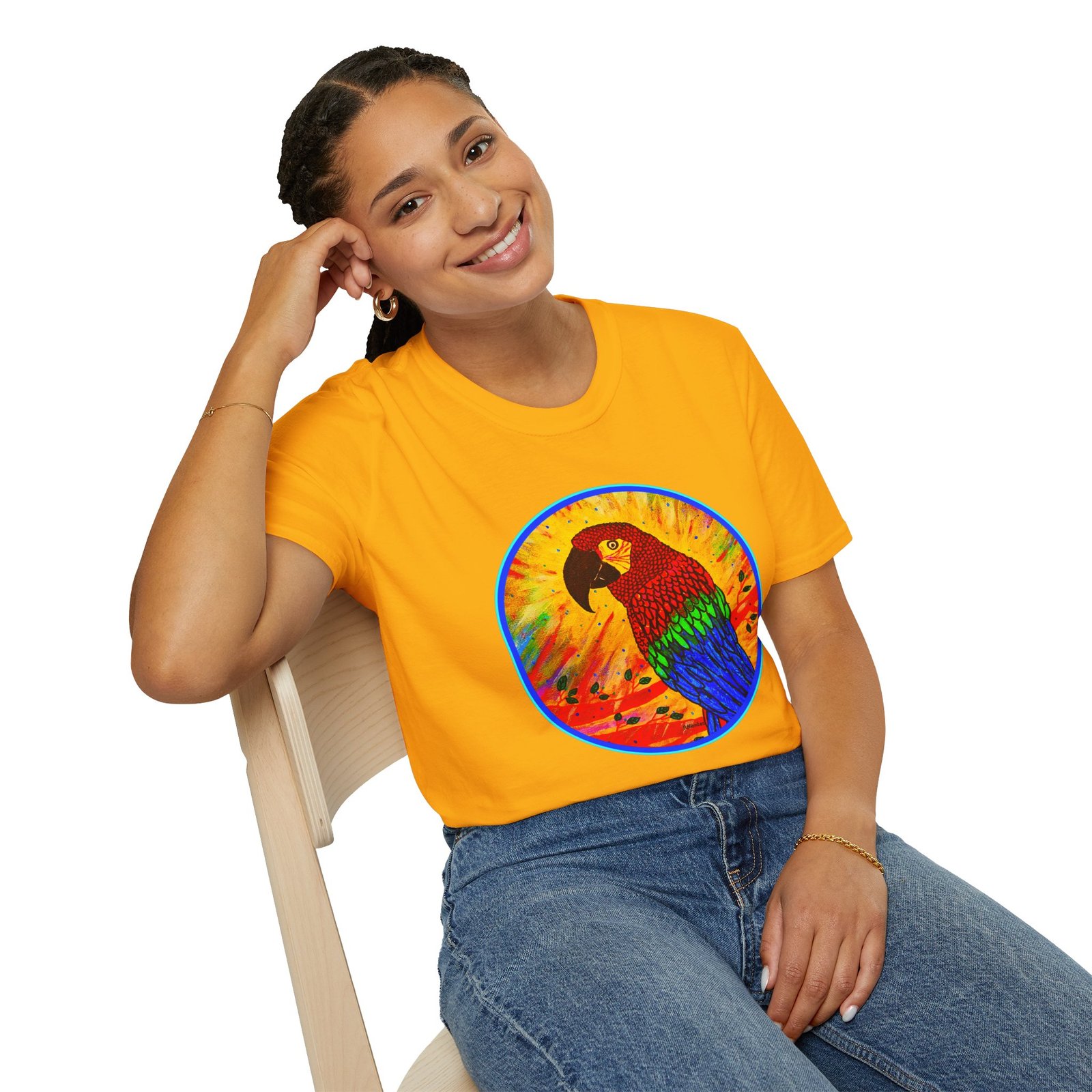 Introducing our vibrant Unisex Soft style T-Shirt, featuring a stunning parrot design that bursts with color and life. This shirt effortlessly combines comfort with style, making it perfect for everyday wear, whether you're lounging at home or out with friends. The bold Caribbean folk art design adds a playful touch, perfect for those who love nature and wildlife. This t-shirt is ideal for casual gatherings or simply as a cheerful pick-me-up. Gift it to animal lovers, artists, or anyone who appreciates unique fashion. This shirt makes a great addition to any wardrobe and is perfect for celebrations and just because!